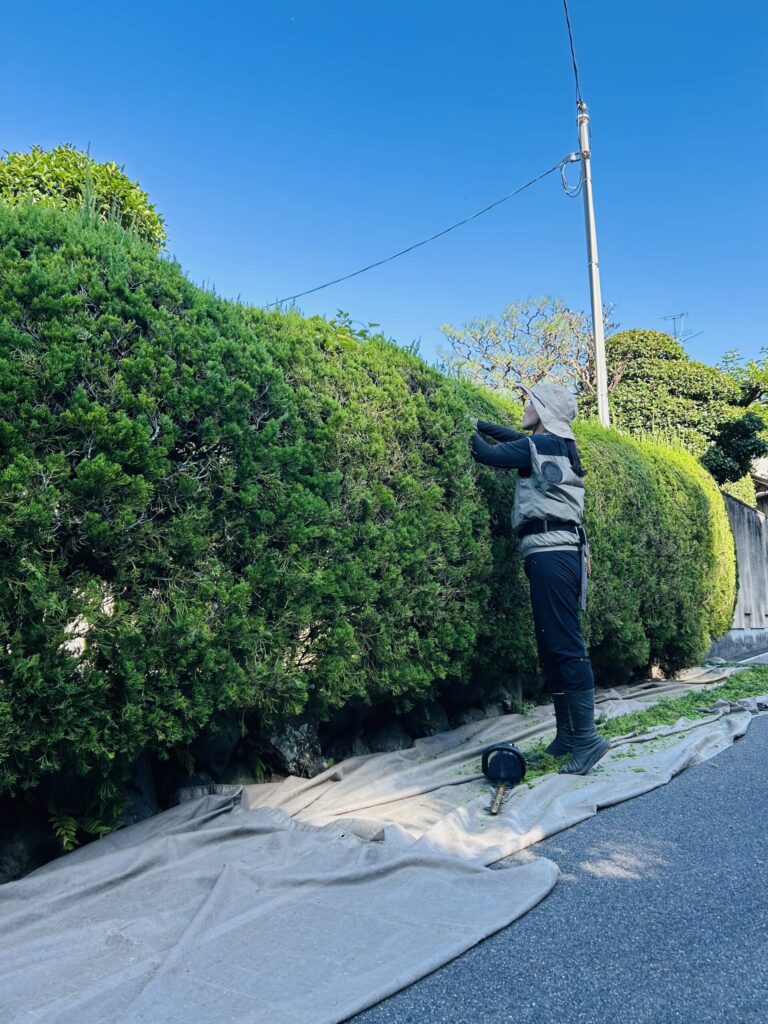 本日はカイズカイブキの生垣を剪定させて頂きました。 充電式のヘッジトリマーが綺麗で早く作業できますので おすすめです。 -