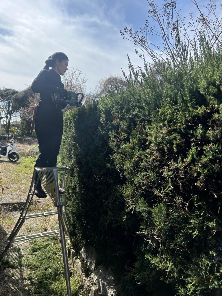 本日はカイズカイブキの剪定をさせて頂きました。